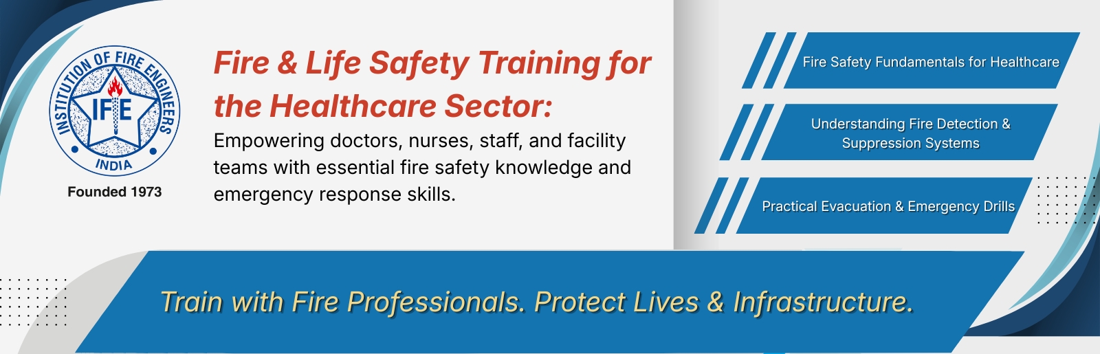 IFE (India) is committed to developing skilled and self-sufficient fire engineering professionals through structured academic programmes, professional examinations, and continuous capacity-building initiatives, enabling them to effectively manage fire, emergency, and disaster situations in urban, industrial, and infrastructure environments.